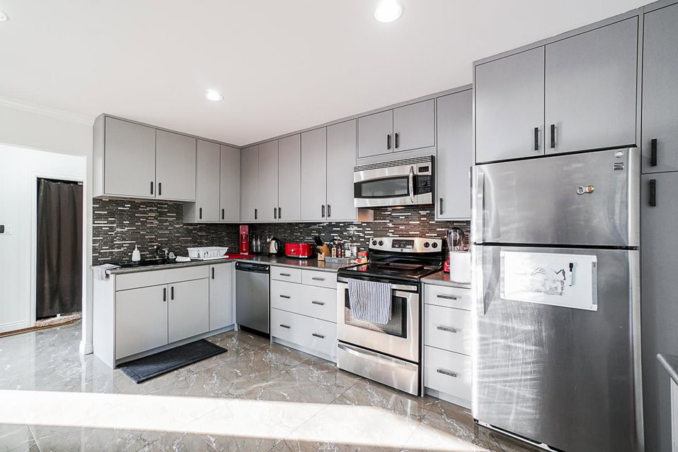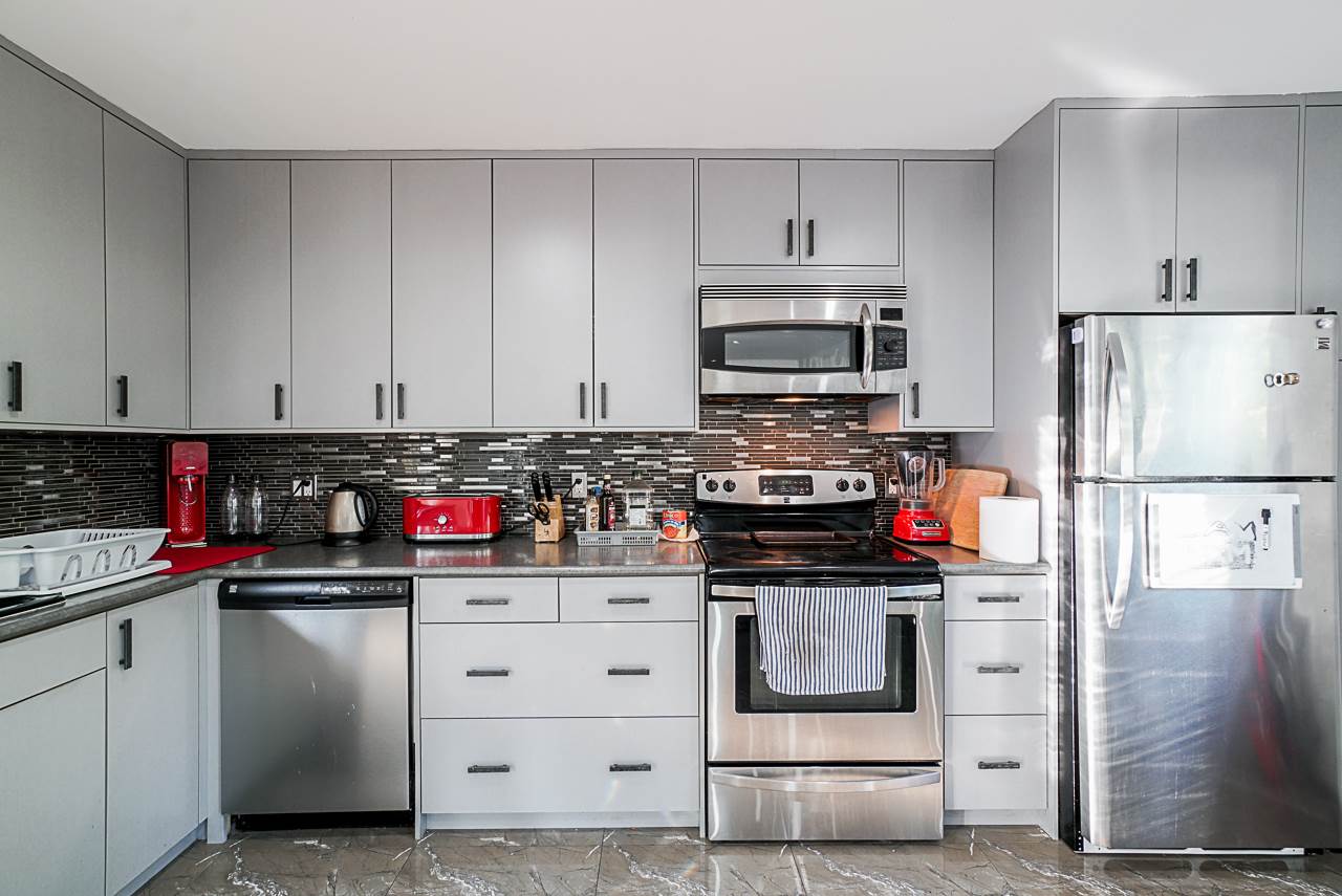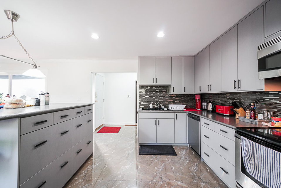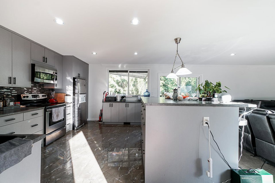 Wow! Totally updated home on a flat 10,355 sq ft lot on quiet side of 144 street overlooking Invergarry Park. Many upgrades in the past 5 years including complete kitchen reno, all new tile flooring, bathroom with jetted shower & double sink vanity,new electrical inc led fixtures & 200 amp service.New windows & power roll shutters. Step out onto your massive/private 1300+ sq ft deck & 23’x 14′ all weather glass covered awning, natural gas heater & BBQ area.Backyard complete with amazing natural gas fire pit,freshly landscaped & solid concrete fencing around the entire property.Newer roof, insulation, metal facia, hidden gutters, cedar soffits. Metal security front gate, newer concrete & stamped driveway, newer stucco & stone exterior,hot & cold water front & back. View video & floorplans.