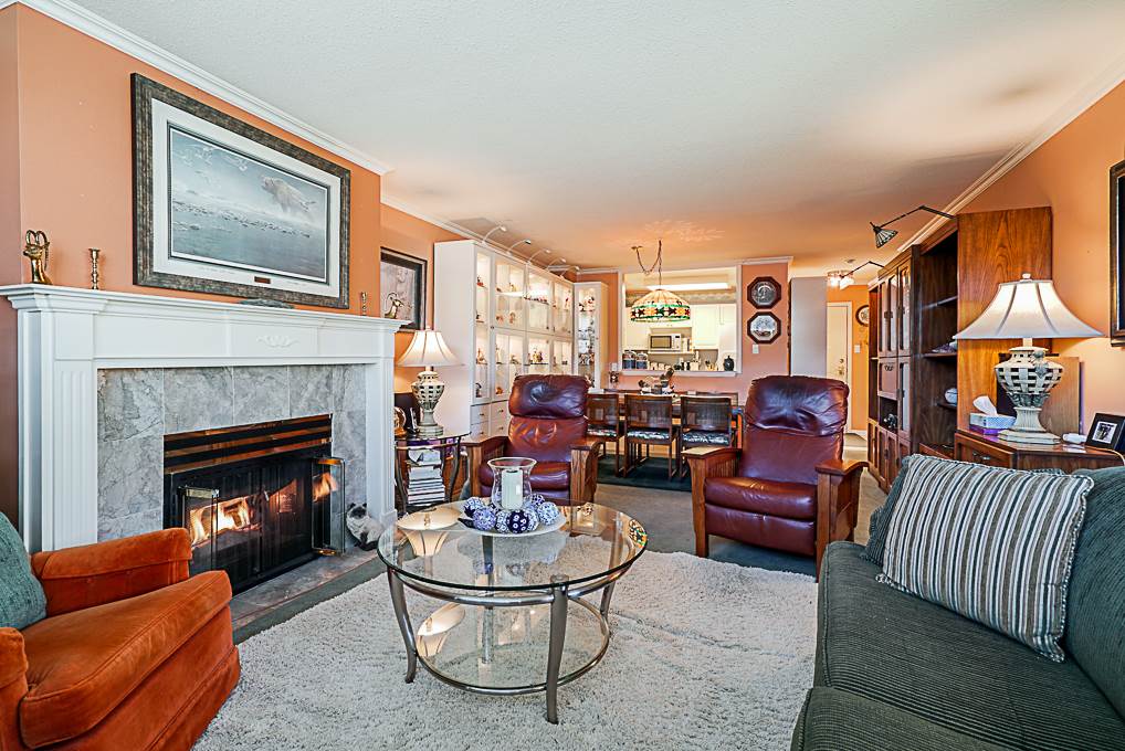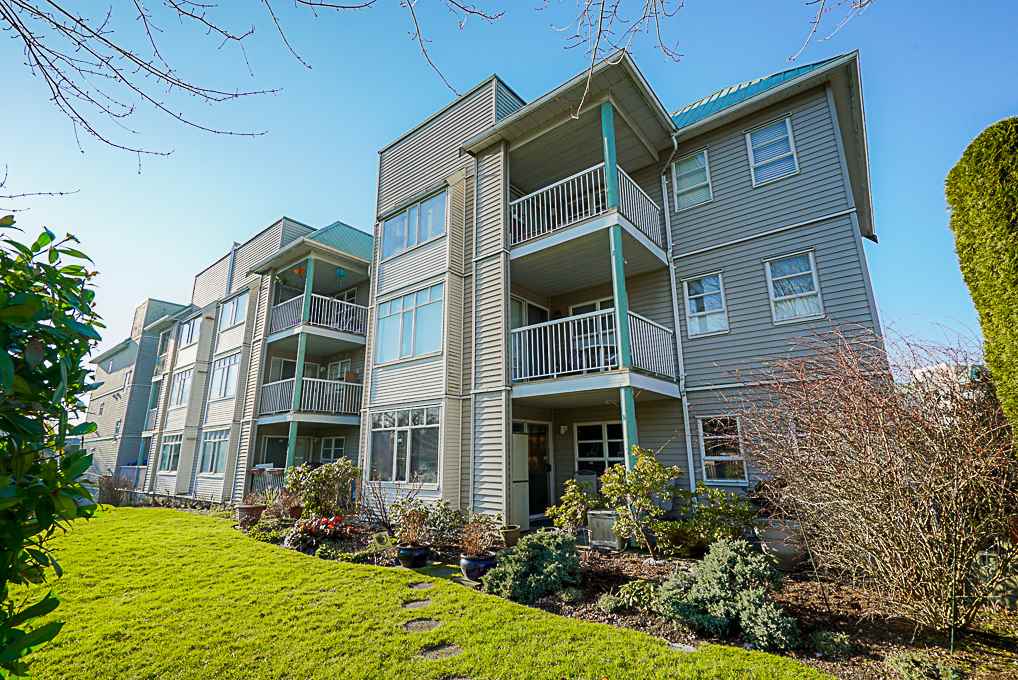Fraser Gate Presents: 1042 sqft of spacious condo living. This ground floor features two large bedrooms and two bathrooms. Both bathrooms have been updated with newer quartz couter tops, including an entirely re-done custom master ensuite shower! Two large bedrooms, with lots of closet space, and bright windows. Enjoy a beautiful and private, well maintained garden surrounding your 20 x 8ft patio in the summer months. Tasteful marble surround cozy gas fireplace (gas included in strata) for the winter months. Unit comes with two parking, security for your comfort, and a built in alarm.