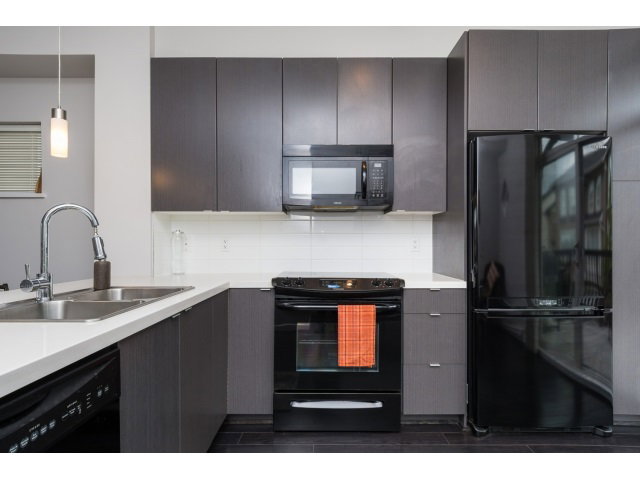 Clayton Rise built by Townline Homes! Light and bright three bedroom, two bathroom town home. This corner home is one of a kind with large sundeck off kitchen and a wrap around fenced front yard with a side view onto greenbelt. Just steps away from park, Katzie elementary and 5,500 square foot clubhouse with outdoor pool. The interior is open concept with quartz counter tops, quality appliances and room for a large table. Attractive brick exterior, walking paths, green space & lots of street parking out front makes this home a winner.Virtual tour available online. Easy to show!