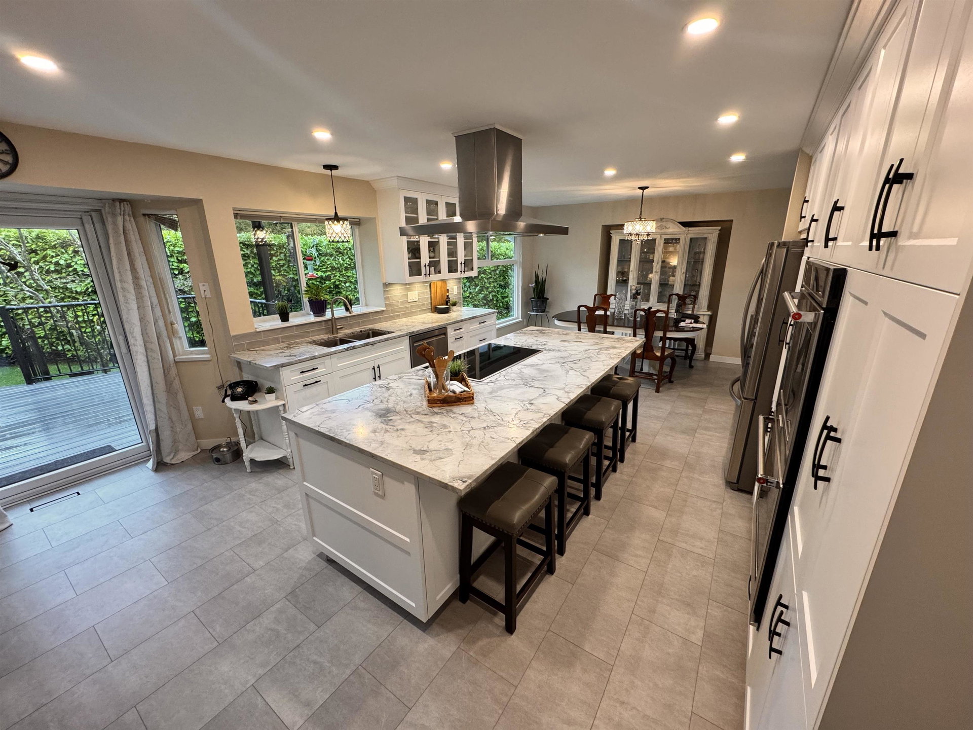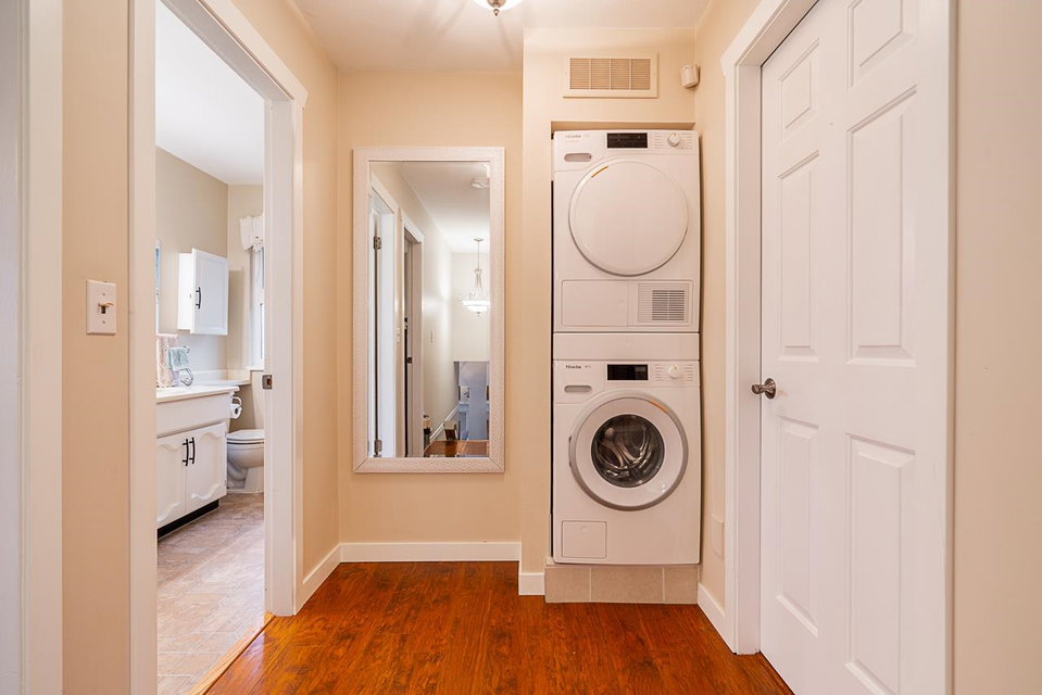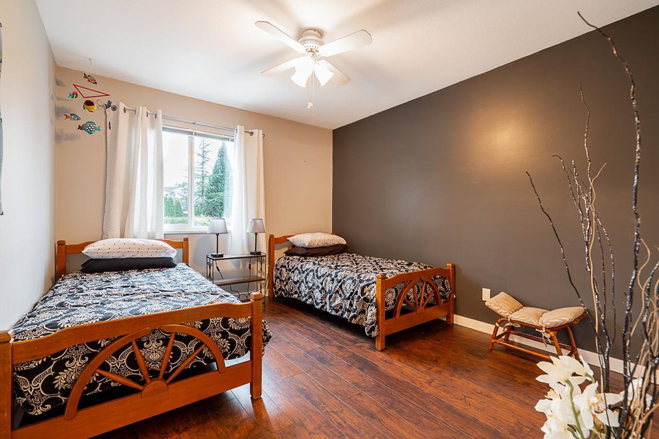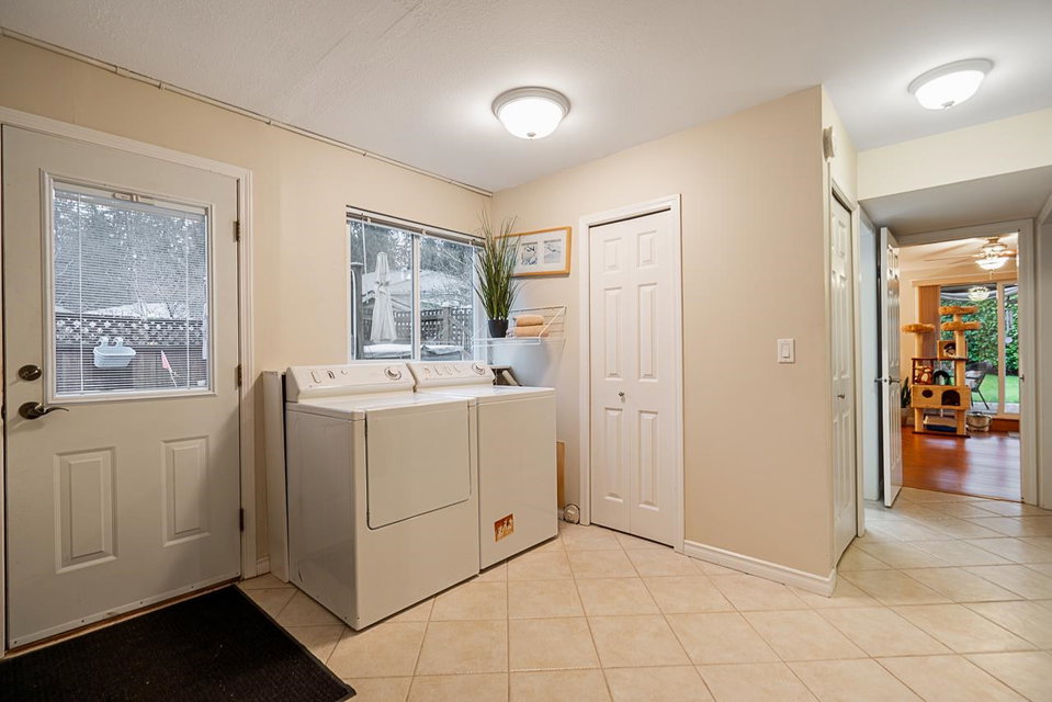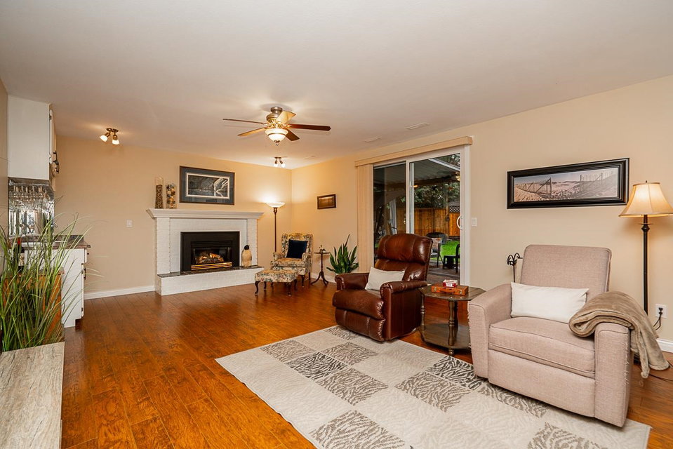 Beautiful 3,085 sq. ft. family home in a quiet cul-de-sac! This 4-bedroom + den home with a basement offers 3 full baths and numerous upgrades. Enjoy a fully renovated kitchen with new cabinets, premium appliances, a double oven, and a 5-burner induction stove. Both the ensuite and main bath have been completely updated. Features new windows, a 4-ft kitchen door, a large main-floor laundry room + bonus upstairs laundry, a newer furnace & heat pump. Additional upgrades include a newer roof, gutters, insulation, and newer insulated garage doors. The private backyard boasts new fencing, an 8-zone underground watering system, a covered 26′ x 14′ glass patio, and a raised 12′ x 11′ composite deck with a glass awning. Conveniently close to schools, shopping & Hwy 1.