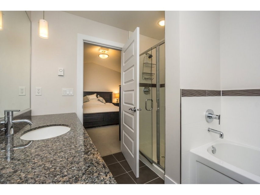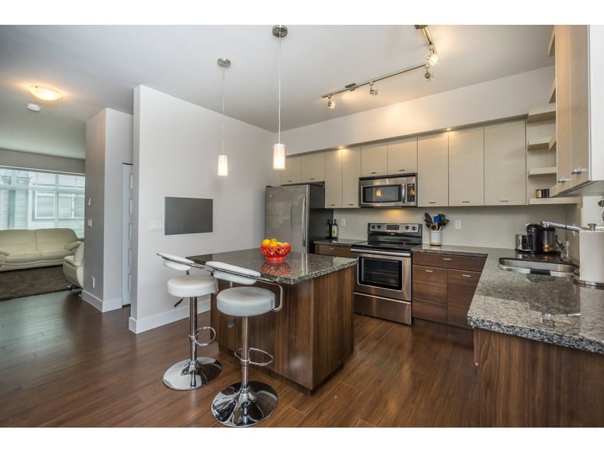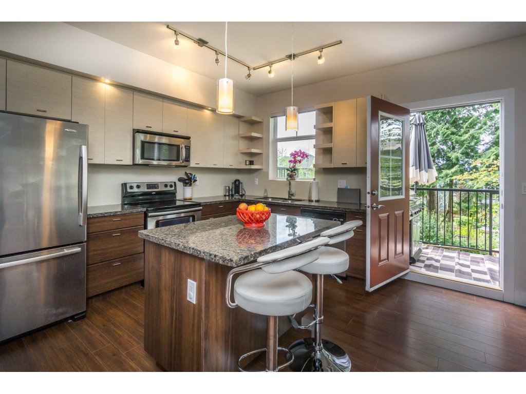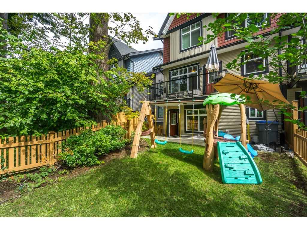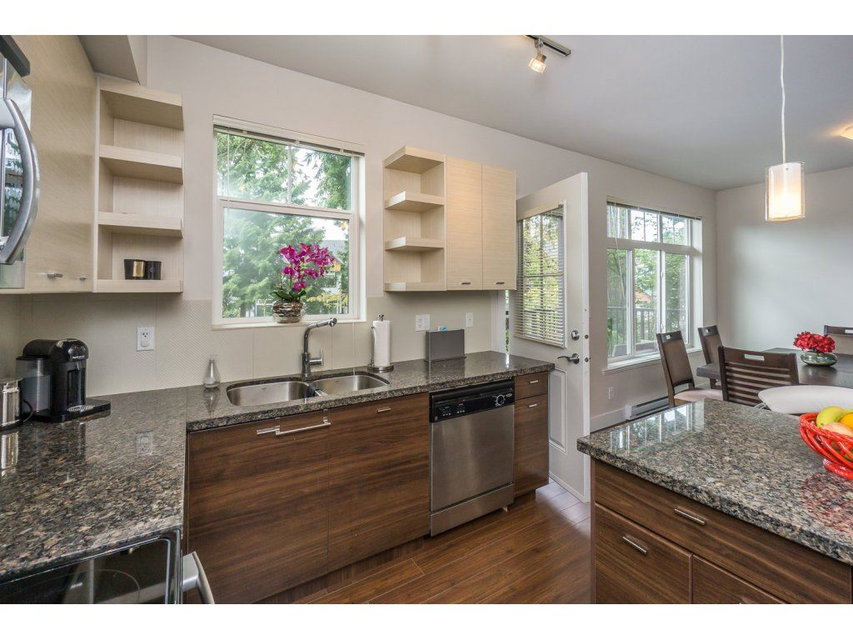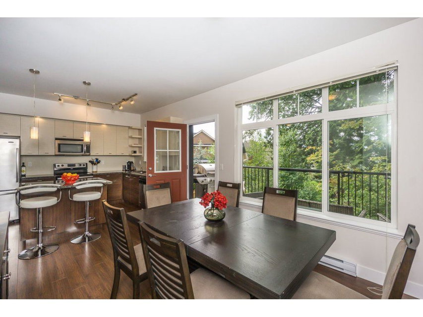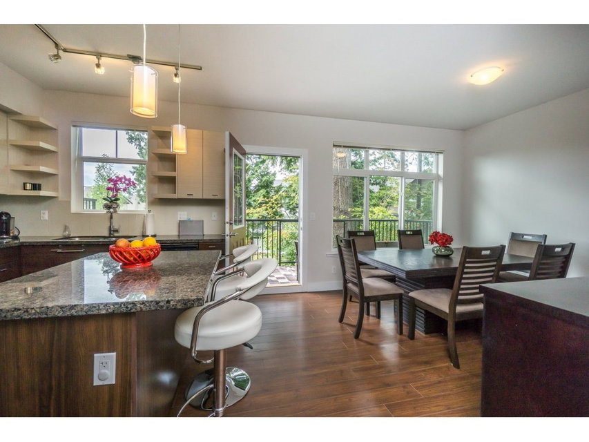 Altura! Gorgeous 1869 sq ft end unit, 3 bed/3 bath plus huge room down with r/i plumbing for 4th bath. Double side by side garage & quiet location backing onto green space. Big master w/vaulted ceiling, w/i closet and deluxe granite ensuite. Open kitchen with granite, stainless appliances with adjoining family room & deck perfect for BBQ. Large separate living/dining room. This home has everything you want inc a huge covered patio & private fenced yard. Great clubhouse with pool, hot tub, billiards, fitness room, guest suite,yoga studio,kids play center +more. Very close to all levels of schools & new shopping center. Excellent strata and contingency.