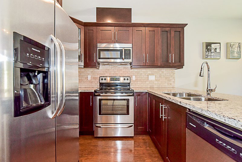 The Highlands… This home has everything.. Style, best location, quality, quaint 20 unit complex, end unit, large bedrooms, and shows like new. Features 9′ ceilings, maple shaker cabinets with soft close, stainless steel appliances,granite countertops with eating bar. Large & bright living room with many windows & molded limestone style fireplace. Master ensuite has 60″ walk in shower, Kohler fixtures, granite counter tops & main bath with soaker tub. Complete with very private and fenced backyard walk out from kitchen. 10’8 x 39’8 garage plus extra storage. View the video/pictures & floor plans. Sold Firm