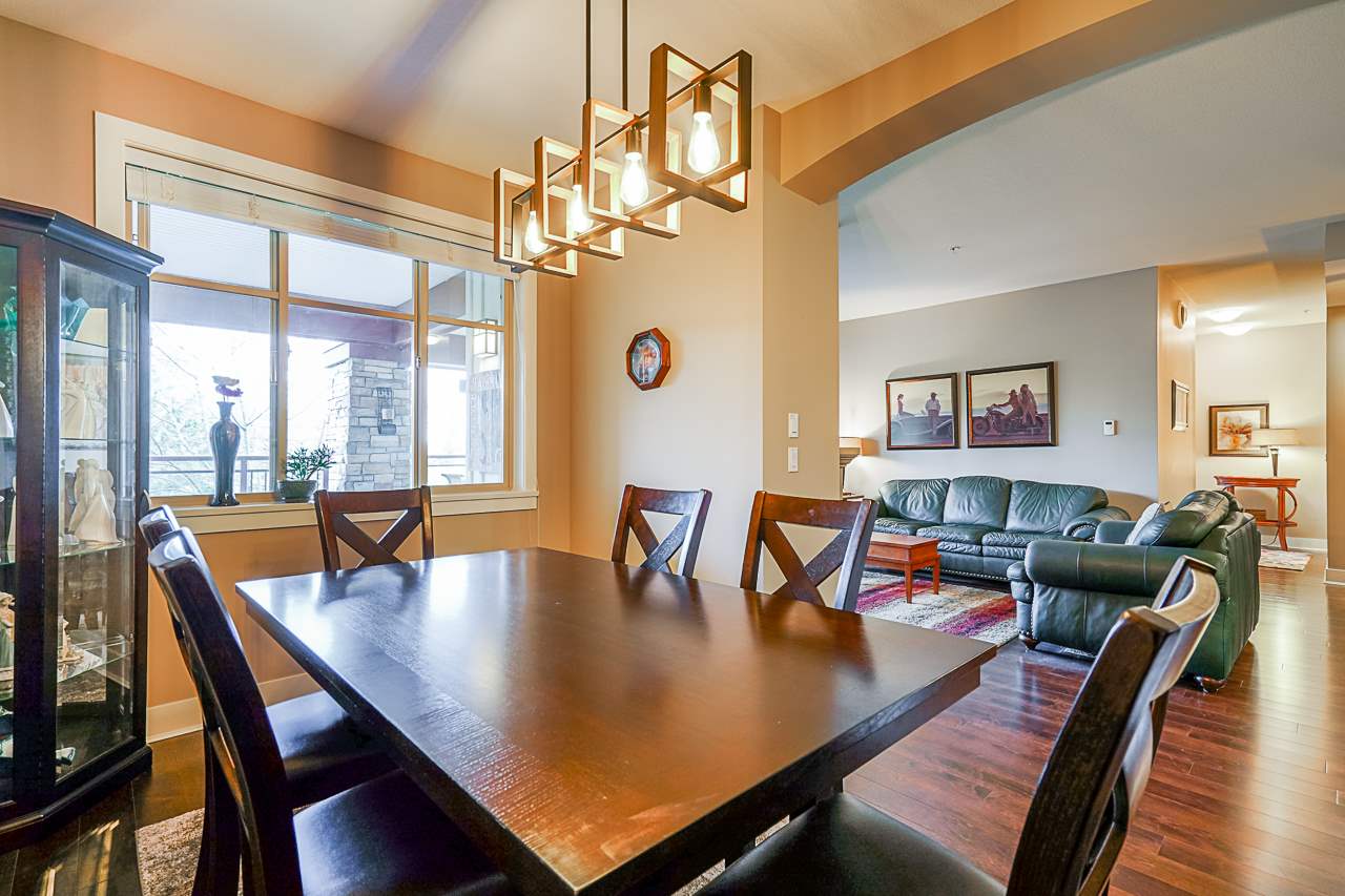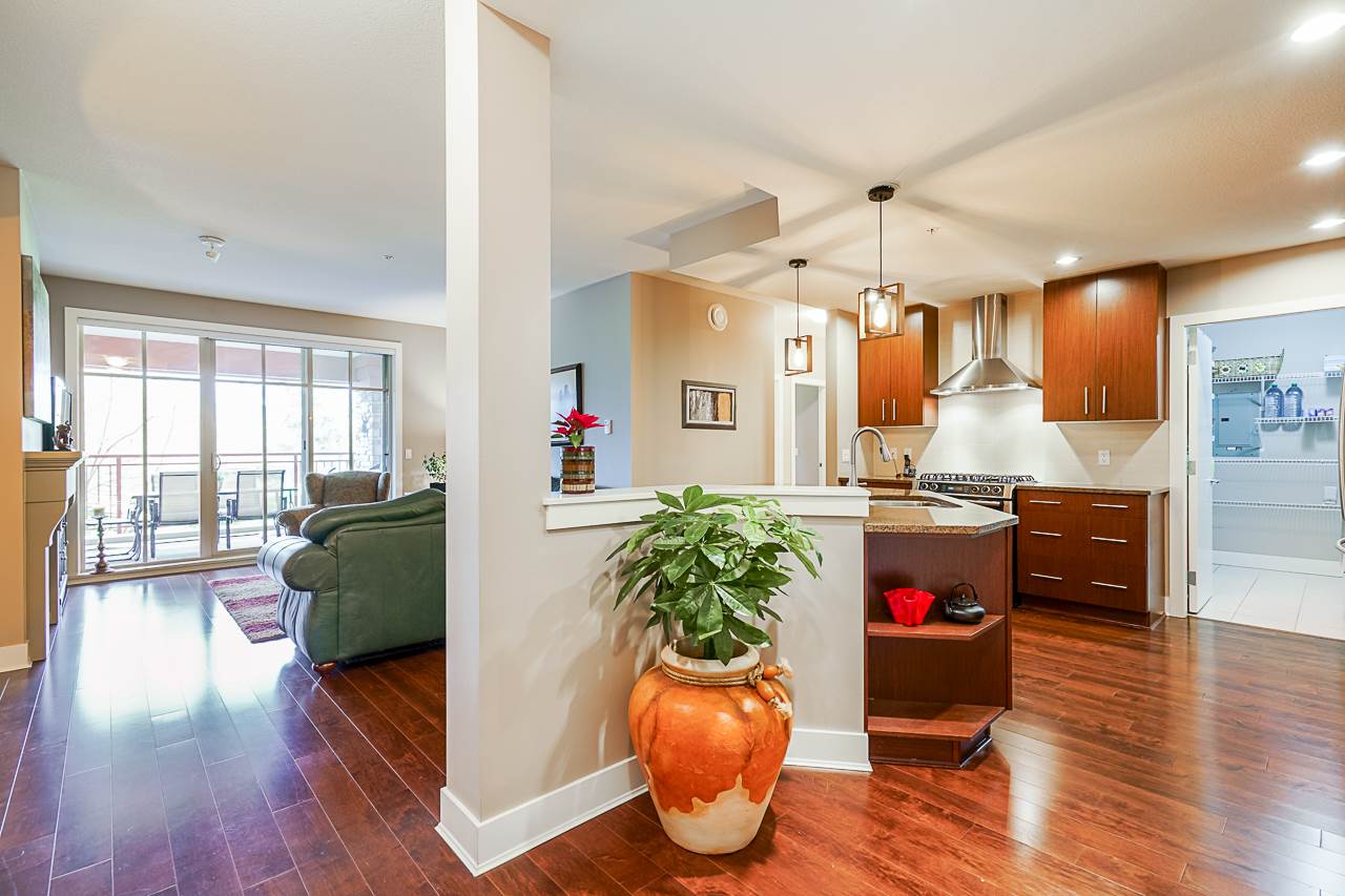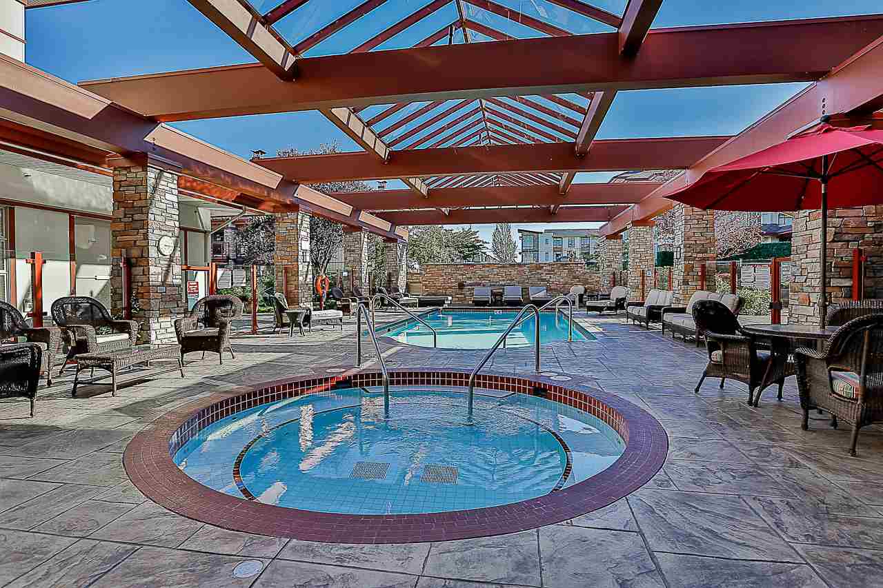 Luxurious resort living with ONE OF THE BEST GOLF COURSE VIEWS. Beautiful 2 bedroom plus den condo. Bright open plan featuring hardwood floors & quality finishing . Large island island, high quality stainless appliances inc natural gas stove. Large master bedroom opens onto balcony, huge walk in closet and 5 piece ensuite. Large second bedroom & den perfect for home office. Living room with gas fireplace opens up to your massive 350 square foot covered deck overlooking golf course. Very well run building with healthy contingency, maintenance fee includes radiant in floor heat & hot water. Many walking trails, parks and shops. Amenities galore! Fitness center, pool, jacuzzi, sauna, theatre room. Complete with 2 parking & storage room just outside your front door. View the Video, pictures.