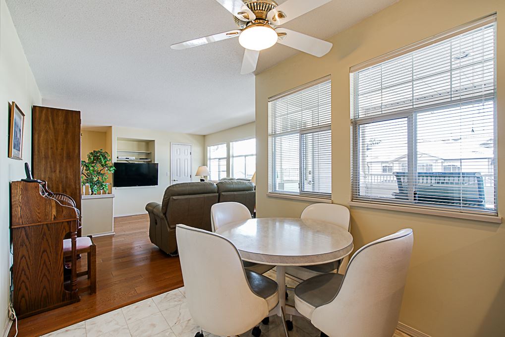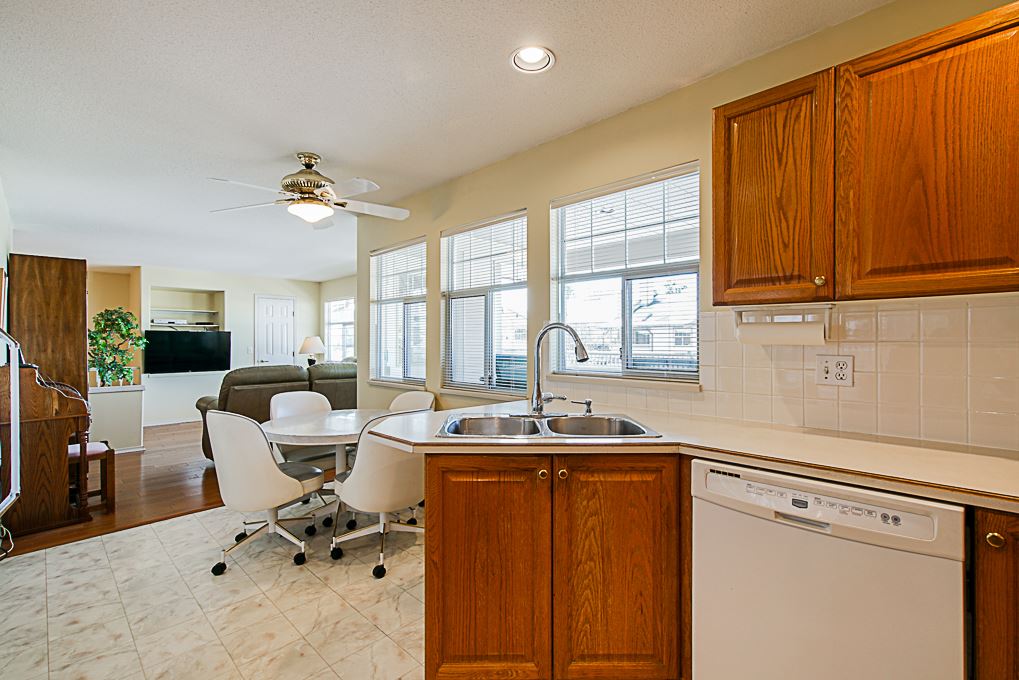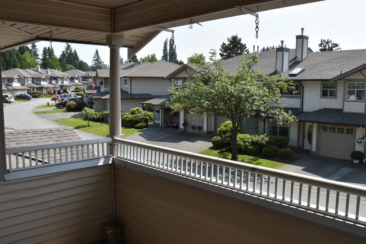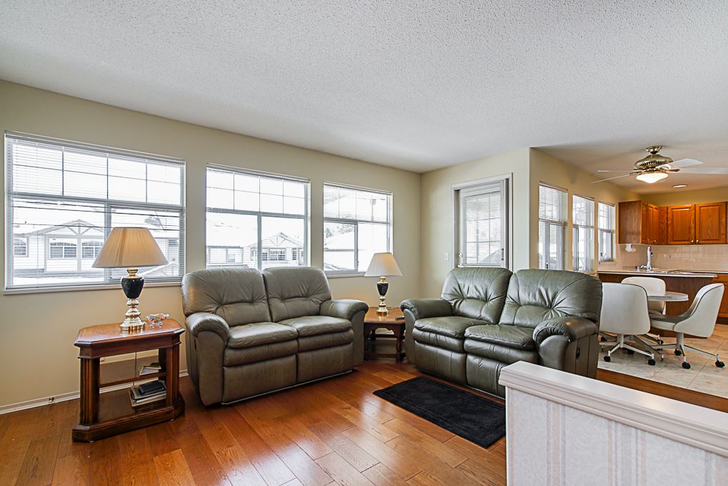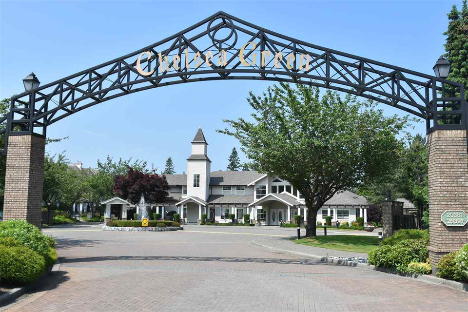 Chelsea Green, 19 plus gated community in Walnut Grove! Great location, 1725 square foot upper rancher backing onto green space. Lots of storage, bonus extra large side by side garage plus full driveway for 2 more cars. Features 2 large covered balconies, hot water radiant heat,gas fireplace, two large bedrooms. Hot water tank replaced 2018, newer hardwood flooring, roof & gutters replaced 2017. Clubhouse, outdoor pool, indoor hot tub, library, workshop, guest suite, R.V. parking makes this home a winner. Just blocks away from grocery stores, coffee shops, everything you need. Transit comes to front of complex. View the cinematic video and floor plans and call today.