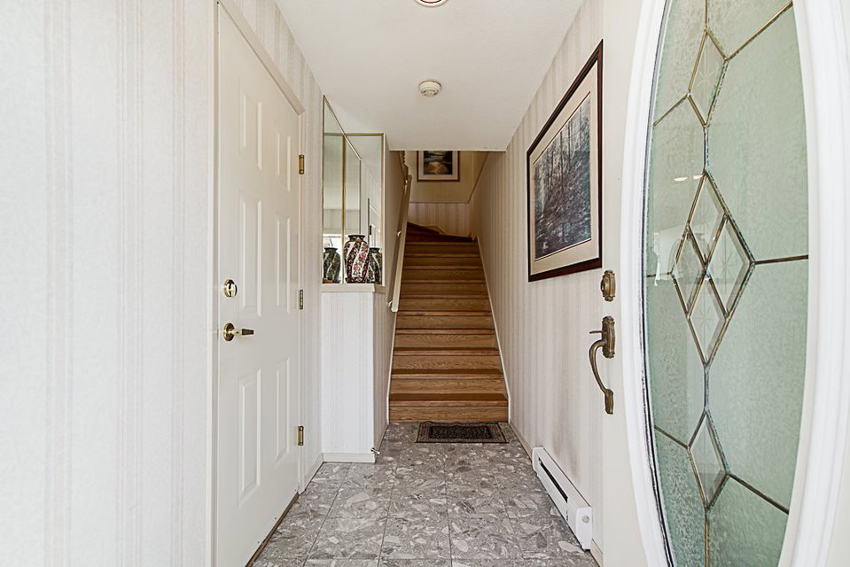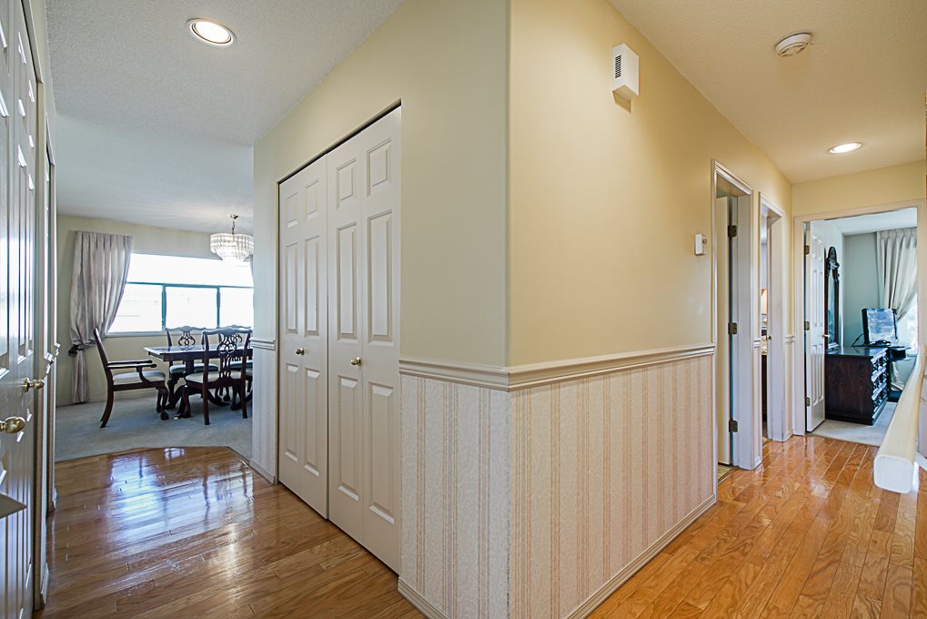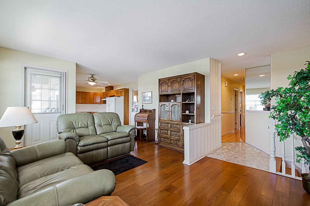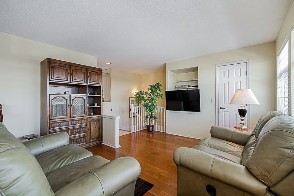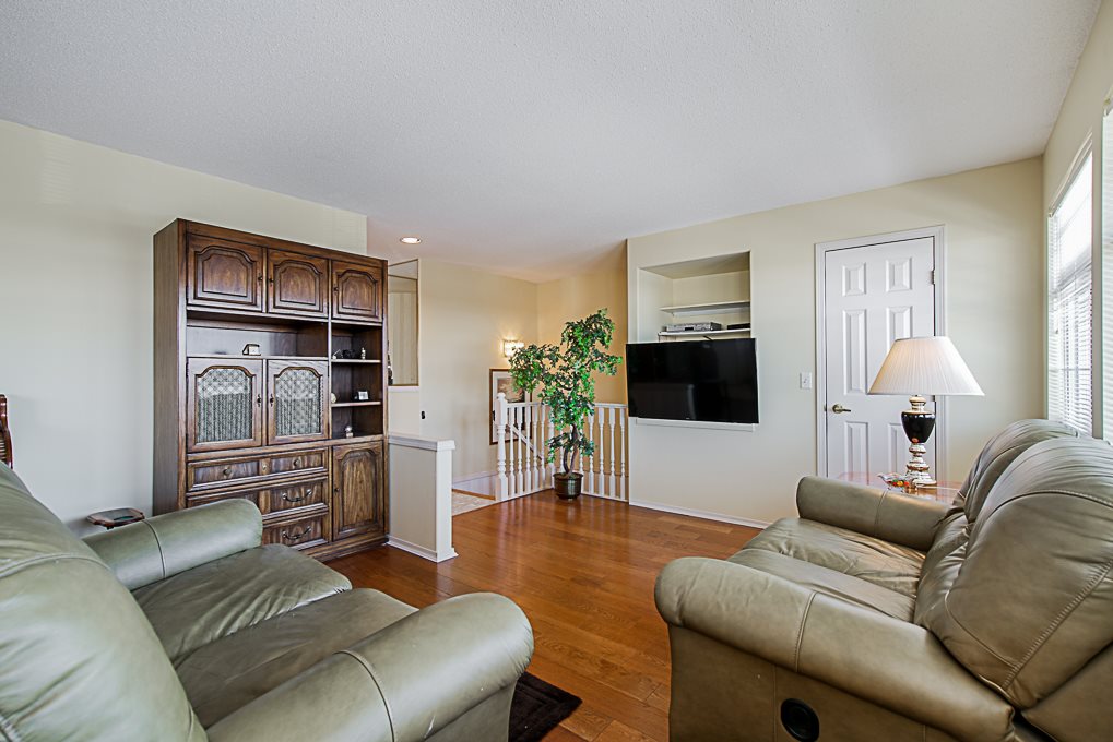 Chelsea Green, 19 plus gated community in Walnut Grove! Great location, 1725 square foot upper rancher backing onto green space. Lots of storage, bonus extra large side by side garage plus full driveway for 2 more cars. Features 2 large covered balconies, hot water radiant heat,gas fireplace, two large bedrooms. Hot water tank replaced 2018, newer hardwood flooring, roof & gutters replaced 2017. Clubhouse, outdoor pool, indoor hot tub, library, workshop, guest suite, R.V. parking makes this home a winner. Just blocks away from grocery stores, coffee shops, everything you need. Transit comes to front of complex. View the cinematic video and floor plans and call today.