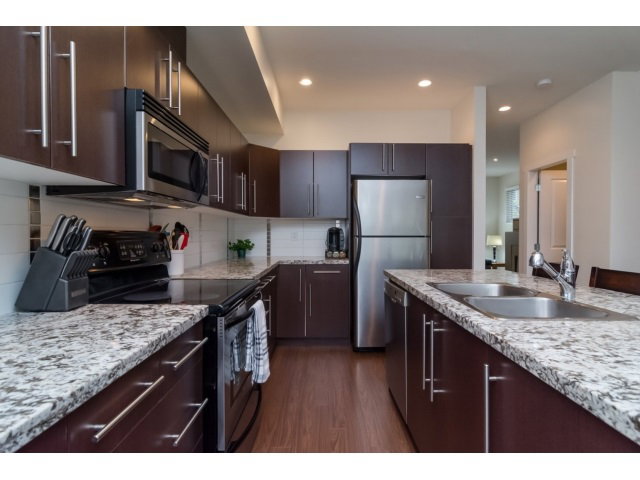 Augusta in Provinceton! Rarely available, freshly painted, super clean 1945 sq ft townhome. 3 bedroom, 4 bathroom open concept plan with 9 foot ceilings. Bonus, large fully finished Flex room below with its own 3 piece bath. Impressive kitchen with huge granite island, S/S appliances & plenty of cupboard space. Large private fenced West facing yard right off the kitchen. Complete with custom built storage cabinet, Gas fireplace, built in vacuum. Double wide garage & two more car parking on pad. Great schools, shopping and transit all nearby. View the virtual Tour and floor plans.