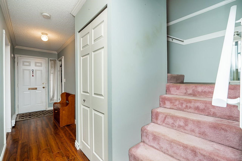This spacious 1332 sq ft corner unit with extra windows is a fantastic find! It features 3 bedrooms, 1.5 bathrooms, two parking stalls and a bright updated kitchen. The large living/dining area is perfect for gatherings, while the primary bedroom on the second floor boasts a walk-in closet. Enjoy the peaceful private outdoor space ideal for relaxing and entertaining. Massive 23′ x 12′ patio. Plenty storage space on main floor & under stairs. Located just steps away from M.B. Sanford Elementary, Frank Hurt Secondary, grocery stores, and transit, it’s a convenient choice for families or a great investment opportunity. Don’t miss out. Pets allowed. View the video, floorplans. Open House this Sunday Nov 3rd, 2:00 – 4:00 P.M.