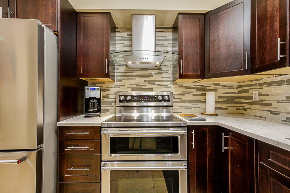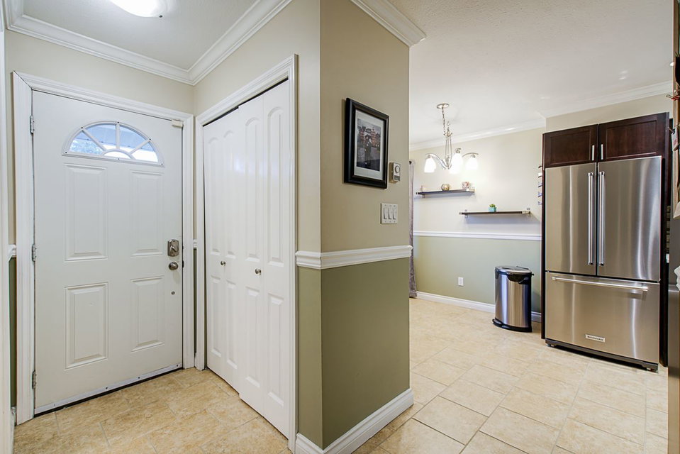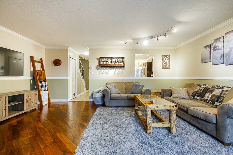 Gorgeous updated 3 bedroom, 2 bath end unit in Parkside Village. Many recent renovations including kitchen quartz countertops & undermount sink. 2018 hot water tank, premium kitchen stainless appliances & Washer and Dryer. Updated baths inc fixtures, toilets, faucets, fan. Converted to LED lights through out. Wi fi controlled baseboard heaters. Keyless entry doors. Heated tile floors in kitchen, foyer, eating area. Hardwood floors & stairs. Kitchen maple cabinets. Extra large bdrms & master closet. Updated laundry w/ folding table. 20’x20′ fully fenced backyard. Large carport & 10’6 x 4’3 storage room. Parking for 3 cars! Quiet & central location, steps to schools, park, recreation center, shopping & transportation. View the cinematic video, pictures & floorplans and call today.